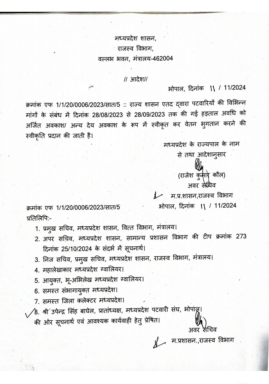 Strike Period Salary Order पटवारी हडताल अवधि के वेतन का आदेश